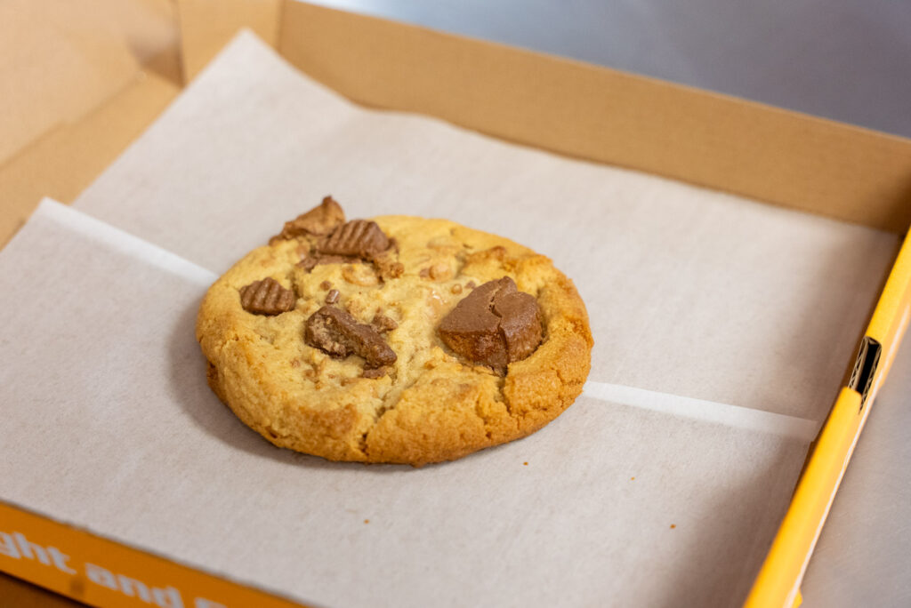 Every cookie is baked fresh to order, so you’ll never find trays of cookies sitting around. That’s what sets them apart from chain shops. When you bite into a Campus Cookie, you know it was made fresh for your order.