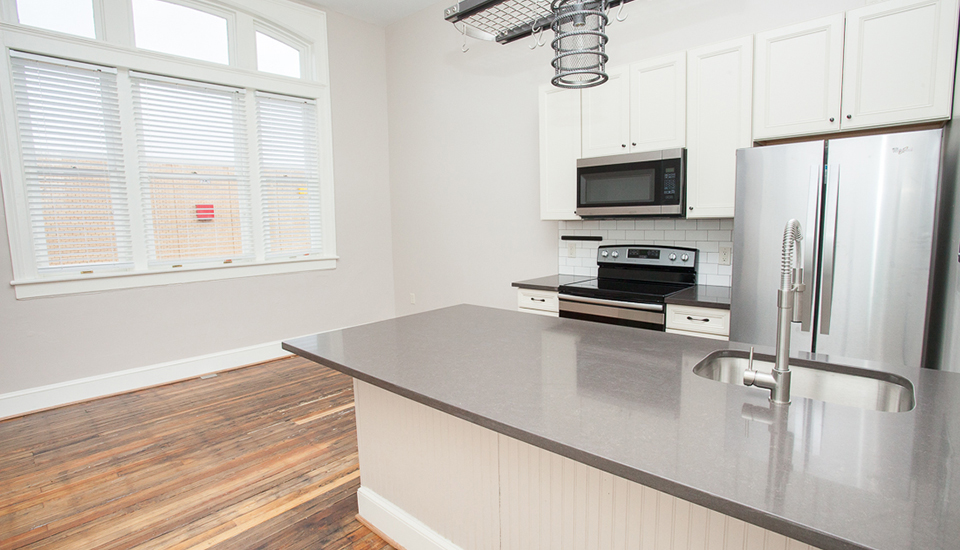 If you are looking for a location in the heart of downtown with more character than you can handle, you have found your home at the Keezell Flats! Built in 1907, one of the first occupants was the Daily News Record and the Public Library. Keeping true to historical value, the Keezell Flats still has the original wooden staircase but includes a much larger elevator than the original. A new fifth floor has been added, along with a common patio for residents to share. You will never feel too tall in these apartments with a ceiling height of about 12 feet for the majority of the floors and original windows covered in plantation blinds that continue the ambience of the Art Deco era. Come see what you never knew you were missing in downtown luxury! The Keezell Flats, city outside, tranquility inside.