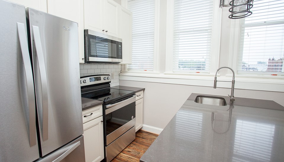 If you are looking for a location in the heart of downtown with more character than you can handle, you have found your home at the Keezell Flats! Built in 1907, one of the first occupants was the Daily News Record and the Public Library. Keeping true to historical value, the Keezell Flats still has the original wooden staircase but includes a much larger elevator than the original. A new fifth floor has been added, along with a common patio for residents to share. You will never feel too tall in these apartments with a ceiling height of about 12 feet for the majority of the floors and original windows covered in plantation blinds that continue the ambience of the Art Deco era. Come see what you never knew you were missing in downtown luxury! The Keezell Flats, city outside, tranquility inside.