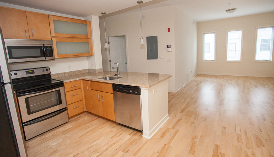 Living green is a lifestyle — but it has been made easier with the Exchange building, which was built using LEED principles, dense spray foam insulation, and a green landscaped roof plaza. Step inside to find sleek granite countertops, low-VOC paints, and premium Jeld-Wen windows—high-quality finishes that elevate your living experience. Each unit features a curated mix of high-end flooring—from resilient Core-Tec and sustainable hardwood to sleek ceramic surfaces—designed to blend style, durability, and comfort. Beyond the apartments, you’ll find amenities designed for modern living, including an electric car plug-in, a glass-walled fitness center with stunning views, a cozy book exchange library/lounge, secure underground parking, and a beautifully landscaped courtyard.