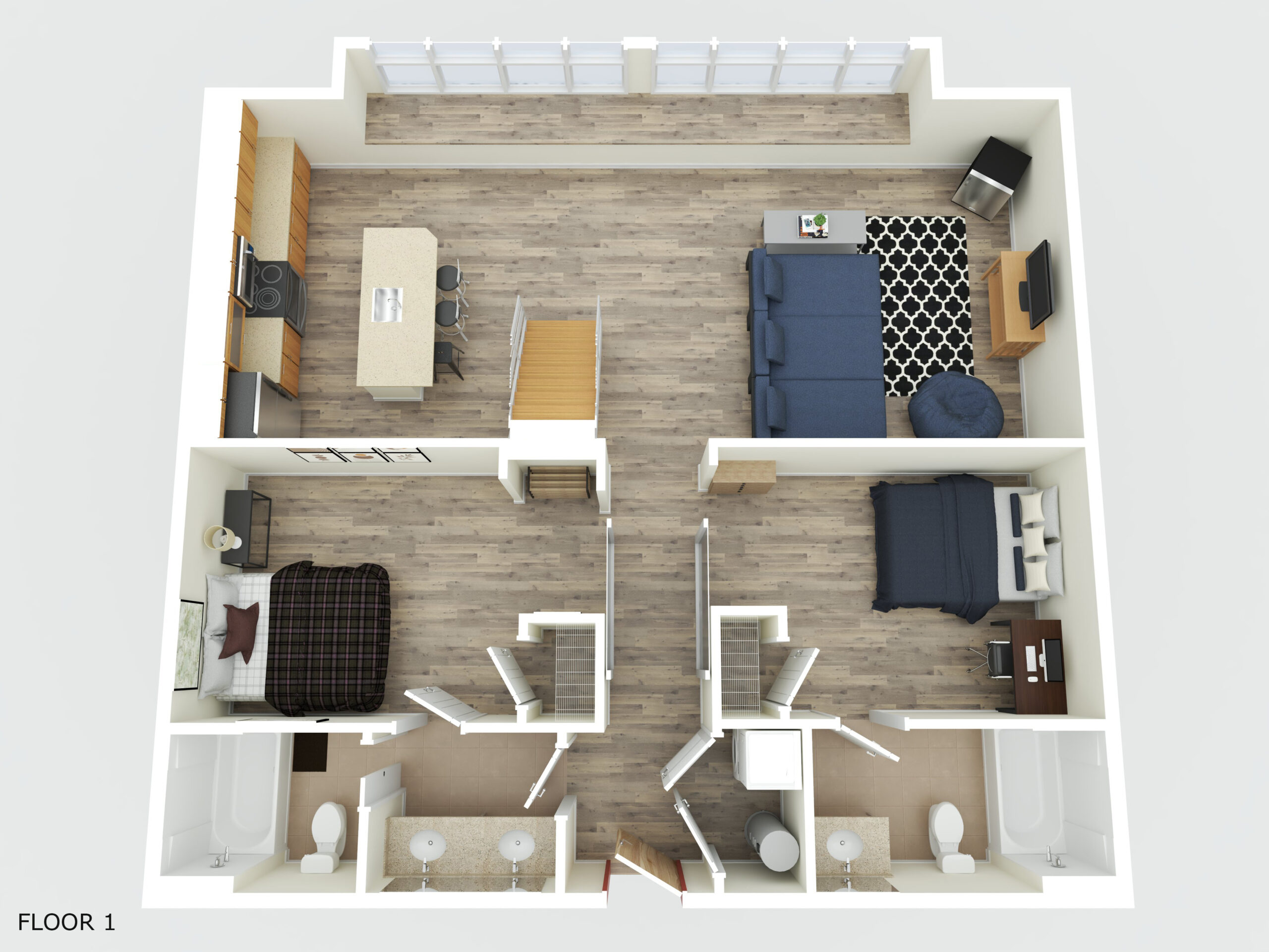 Discover the vibrant energy of Urban Exchange, where downtown Harrisonburg energy meets your everyday groove. As the city’s largest residential community, Urban Exchange is home to 194 apartments and offers over 45 unique layouts, including studio, 1-bedroom, 2-bedroom, and 3-bedroom options, all designed to fit both student and non-student lifestyles. This is a metro home that is designed for those who have‚ “been there, done that,” and decided that having a refuge providing peace and comfort can be a good thing. Whether you’re flying solo or sharing space, you’ll find the perfect apartment to call home.