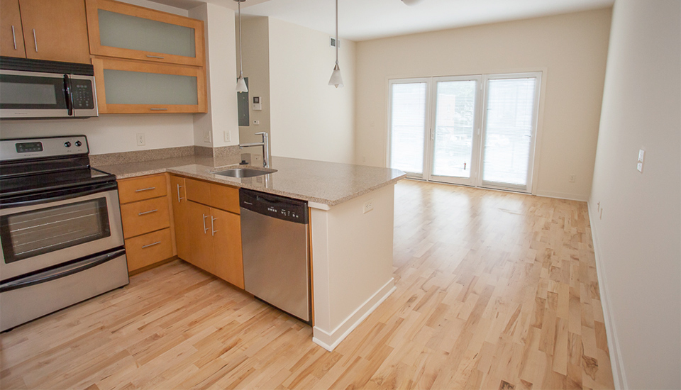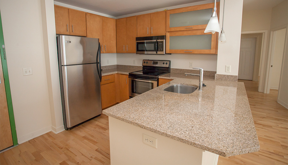 Living green is a lifestyle — but it has been made easier with the Exchange building, which was built using LEED principles, dense spray foam insulation, and a green landscaped roof plaza. Step inside to find sleek granite countertops, low-VOC paints, and premium Jeld-Wen windows—high-quality finishes that elevate your living experience. Each unit features a curated mix of high-end flooring—from resilient Core-Tec and sustainable hardwood to sleek ceramic surfaces—designed to blend style, durability, and comfort. Beyond the apartments, you’ll find amenities designed for modern living, including an electric car plug-in, a glass-walled fitness center with stunning views, a cozy book exchange library/lounge, secure underground parking, and a beautifully landscaped courtyard.