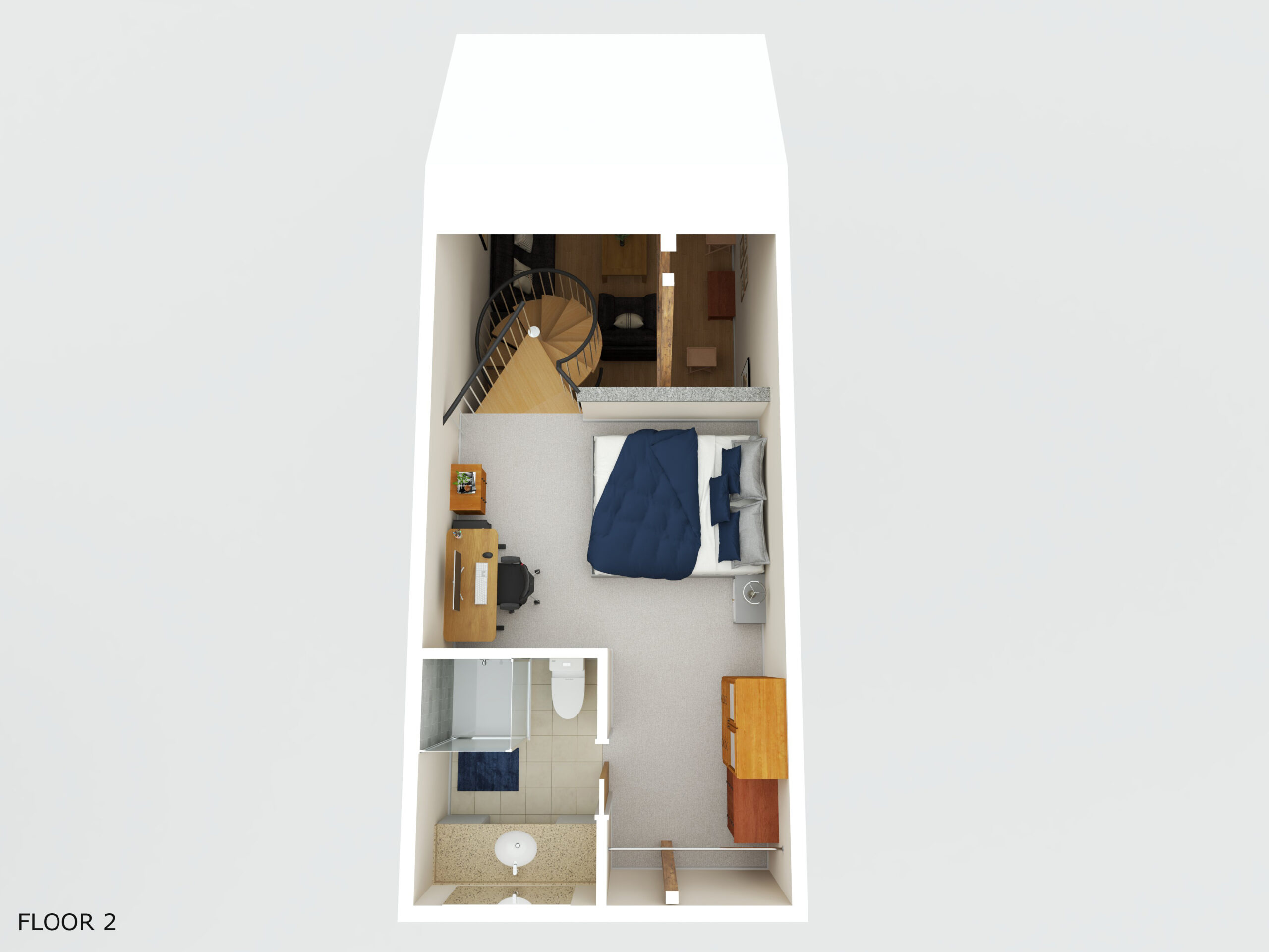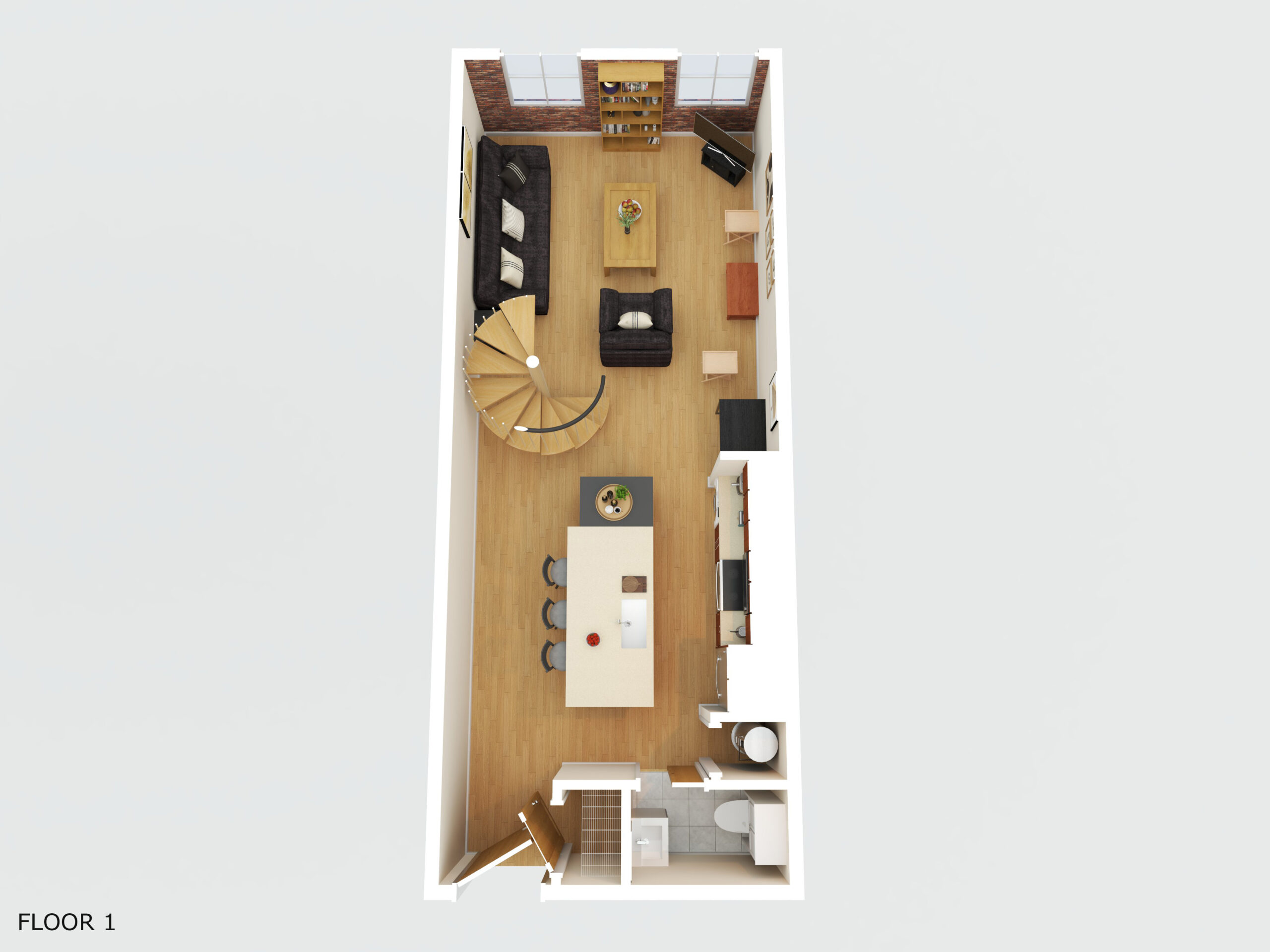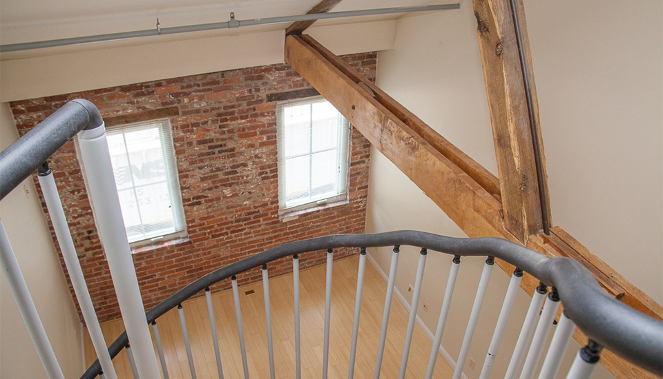 This 1 bedroom, 1 bathroom loft apartment is a cozy space for anyone looking to become a part of the growing downtown scene in the ‘burg. The open living room and kitchen are accented by the exposed brick wall and Italian spiral staircase that leads to the loft bedroom. The bedroom features a wardrobe and bathroom.