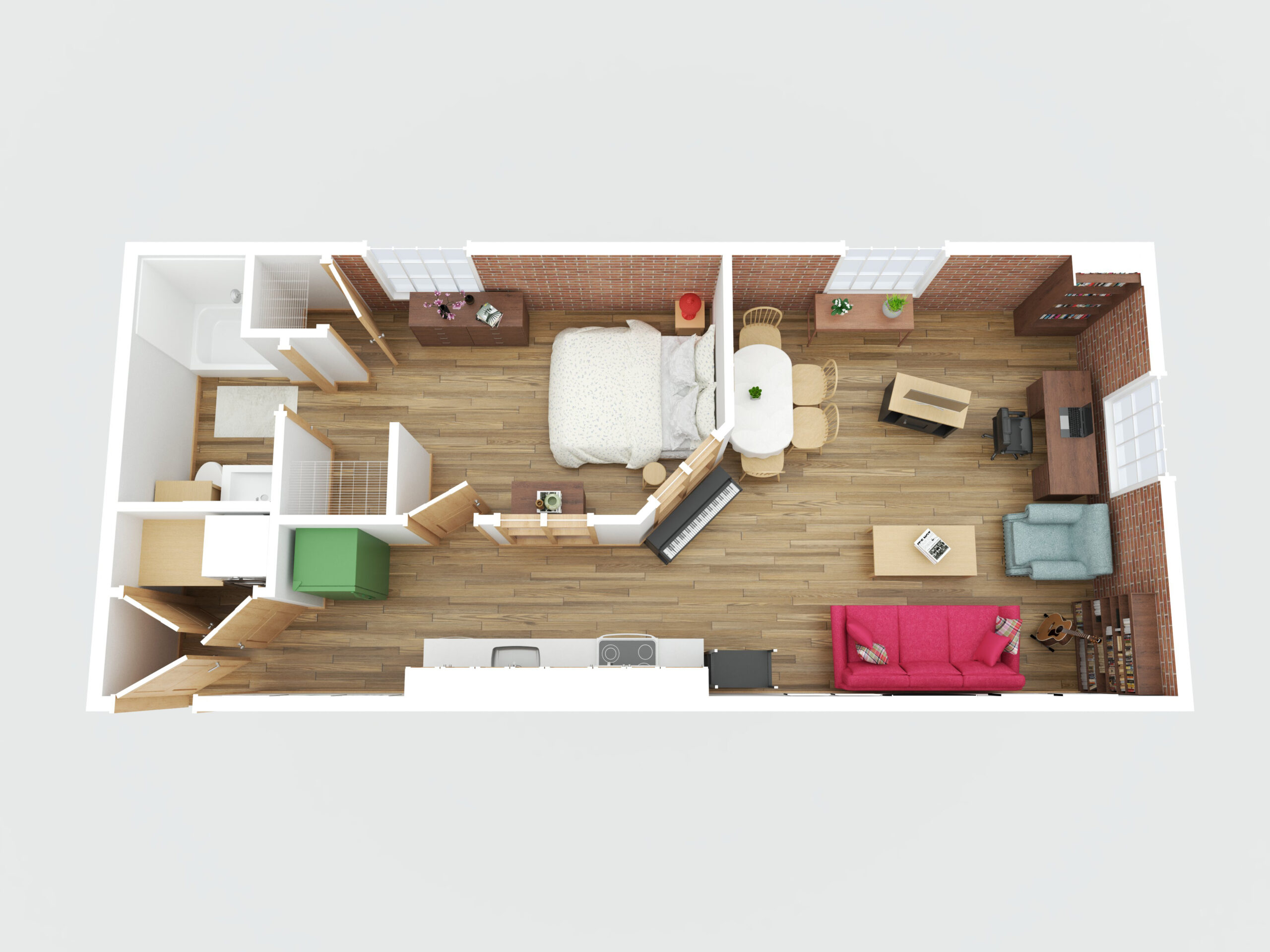 Beautiful corner unit with views looking South and West. Solar tube in the bathroom and a skylight in the living room with plenty of windows. Two walls of brick in the apartment because this apartment is situated on the corner of the building.